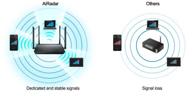 - 4 fixed 5dBi antennas and AiRadar technology strengthens wireless coverage.
