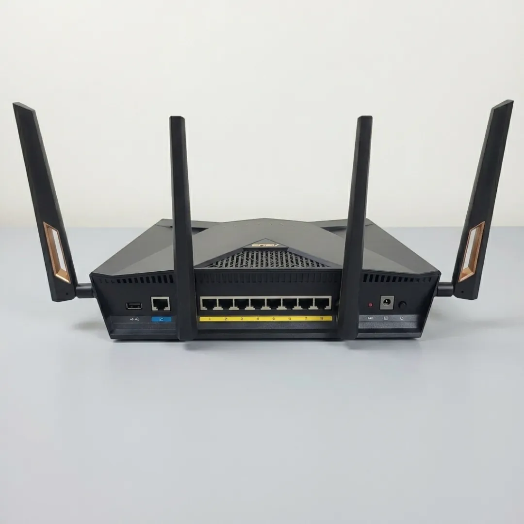 The ASUS RT-AX88U is a high-performance wireless router designed to deliver fast and reliable Wi-Fi connectivity for home or small office environments. It utilizes the latest Wi-Fi 6 (802.11ax) technology to provide improved efficiency, speed, and capacity compared to previous Wi-Fi standards.