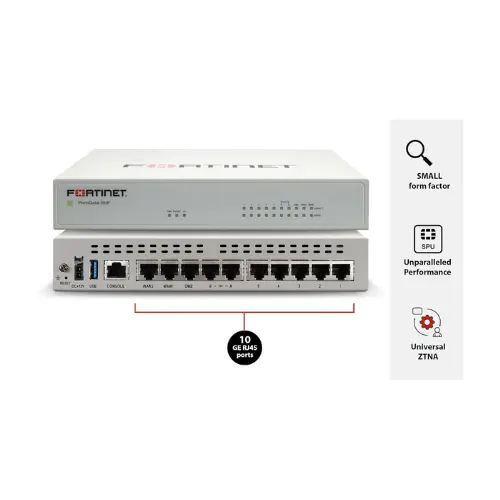 - High-Performance Security Processor: Powered by Fortinet’s SPU SoC4, delivering superior performance for inspection and threat prevention.