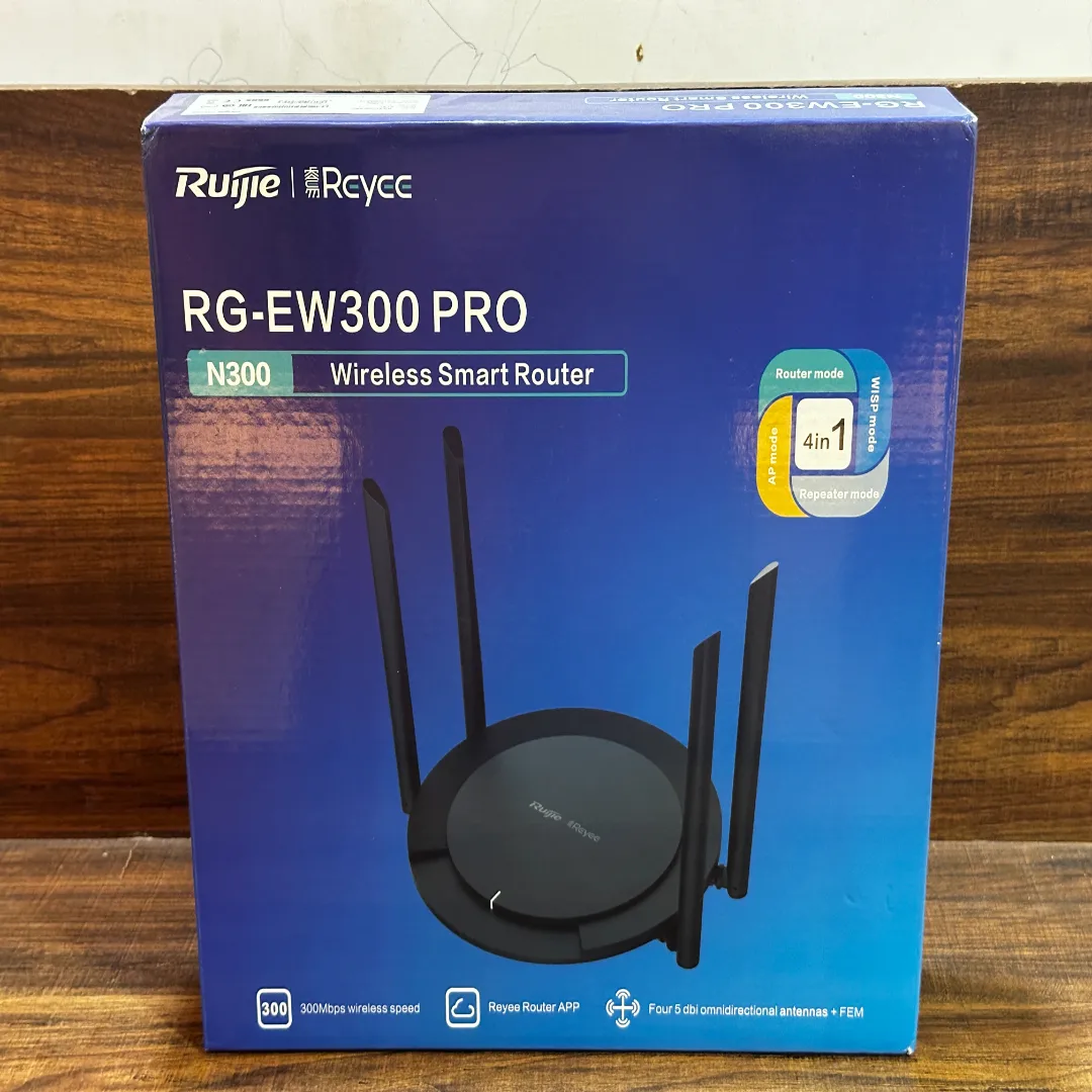 The Ruijie Reyee RG-EW300 PRO is a 300Mbps Wireless Smart Router designed for home and small office networks. It provides stable 2.4GHz WiFi performance, easy setup, and cloud-based smart management for smooth internet control anytime, anywhere.